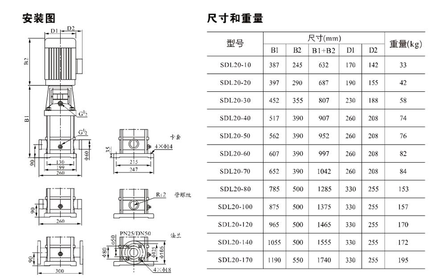 南元SDL20/SDLT20立式多級(jí)離心泵有不同的泵規(guī)格和不同級(jí)數(shù),以滿足所需的流量和壓力。