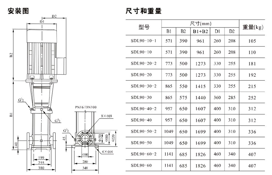 SDL90/SDLT90立式多級(jí)離心泵其管道式結(jié)構(gòu)可以確保泵可直接安裝在進(jìn)出在同一水平線上且管徑相同的水平管路系統(tǒng)中,這種設(shè)計(jì)使泵的結(jié)構(gòu)和管路更為緊湊。
