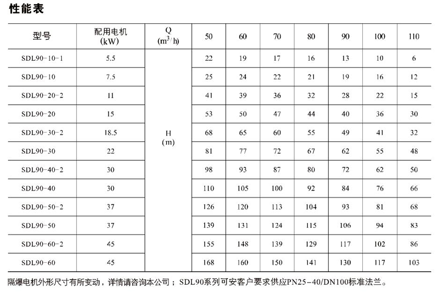 南元SDL90/SDLT90立式多級(jí)離心泵有不同的泵規(guī)格和不同級(jí)數(shù),以滿足所需的流量和壓力。