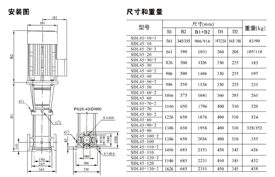 南元SDL45/SDLT45立式多級(jí)離心泵有不同的泵規(guī)格和不同級(jí)數(shù),以滿(mǎn)足所需的流量和壓力。