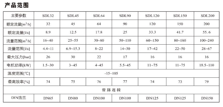 SDL45/SDLT45是一種多功能產(chǎn)品,可以輸送從自來(lái)水到工業(yè)液體的各種不同介質(zhì),適用于不同溫度、流量和壓力范圍。