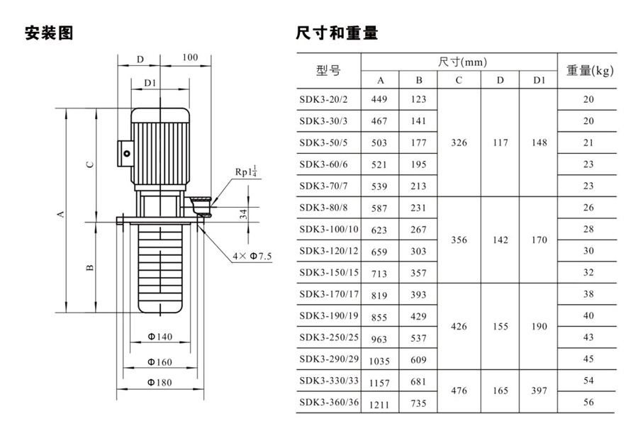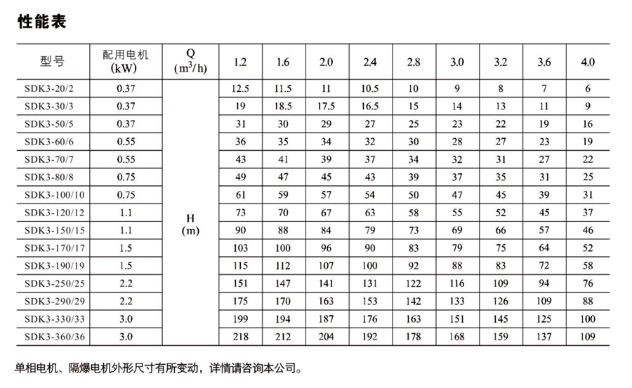 SDK3/SDKT3為配用標準電機的非自吸立式多級離心泵,電機軸和泵軸用聯軸器直接聯接的結構。為滿足水槽或容器的安裝深度,可安裝空套的腔體來改變泵本身的侵入 深度。