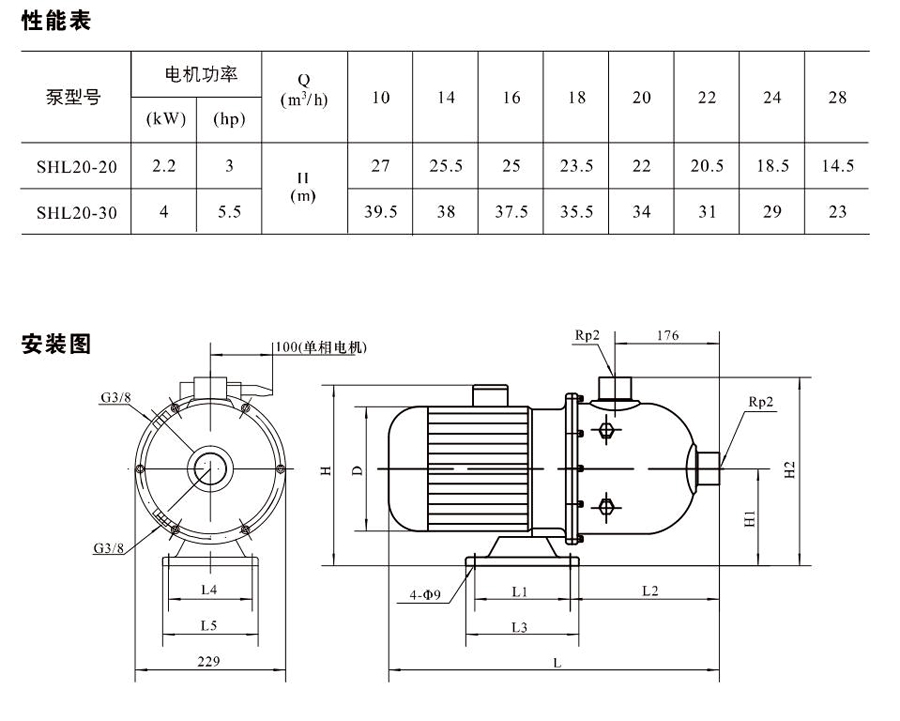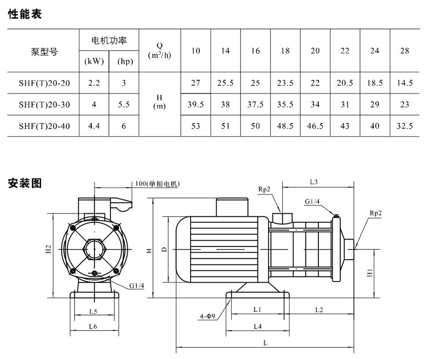 SHL/SHF/SHFT20為臥式多級非自吸多級離心泵,配加長軸電機。緊湊式結構使泵尺寸很小,軸向入口或徑向出口。