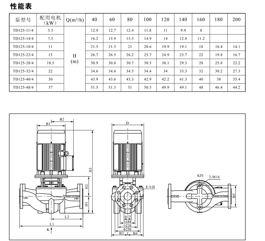 TD125系列單級管道離心泵,配有標準電機和機械密封。此類產品的結構與相近類型產品相比,更不易受到泵送液體中雜質的影響。產品設計為頂部可拉出的拆裝形式,其可以在不影響管路系統的情況下對泵進行維修。所有泵采用創新式便拆式機械密封,更好機械密封無需拆卸電機。